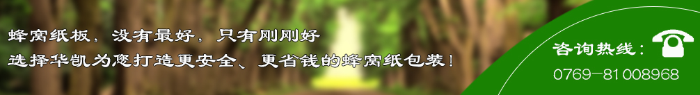 東莞市華凱紙品有限公司成立于2001年,注冊資金200萬元。是廣東省東莞市一家專業從事研發生產和銷售蜂窩紙板、蜂窩紙芯、蜂窩紙箱、蜂窩內襯、紙卡板(紙棧板、紙托盤)、紙護角(護角紙)、紙滑板等各類環保包裝材料及蜂窩制品加工技術和設備的高新技術企業。產品廣泛應用于印刷、文具、玩具、拼圖、相冊、皮具、電器、家具、五金機械、倉儲運輸、陶瓷、建筑裝飾等行業。蜂窩紙板可以替代木材、發泡膠(EPS)、珍珠棉,可循環再生,是出口產品理想的環保包裝材料。紙棧板用來代替木卡板、塑膠棧板出口裝貨柜使用,免熏蒸,材料符合RO...